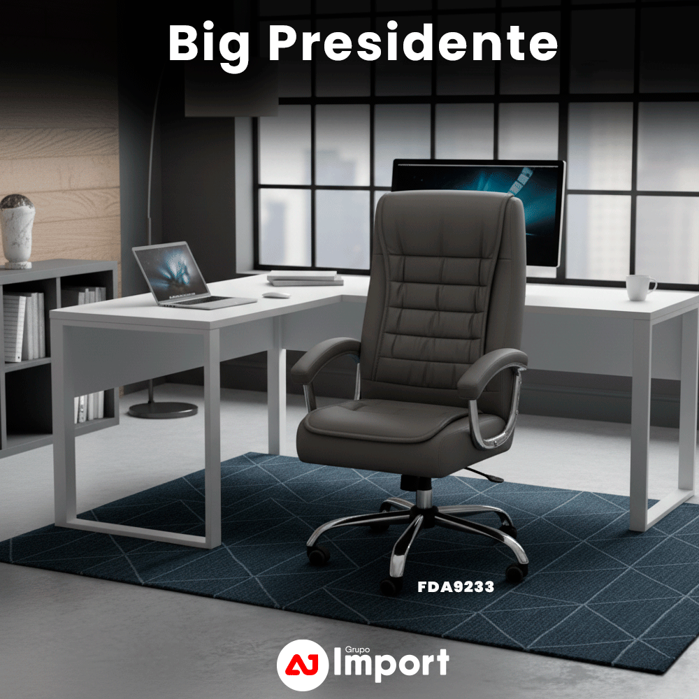 Modelo: Cadeira Escritório BIG Presidente PU Cinza